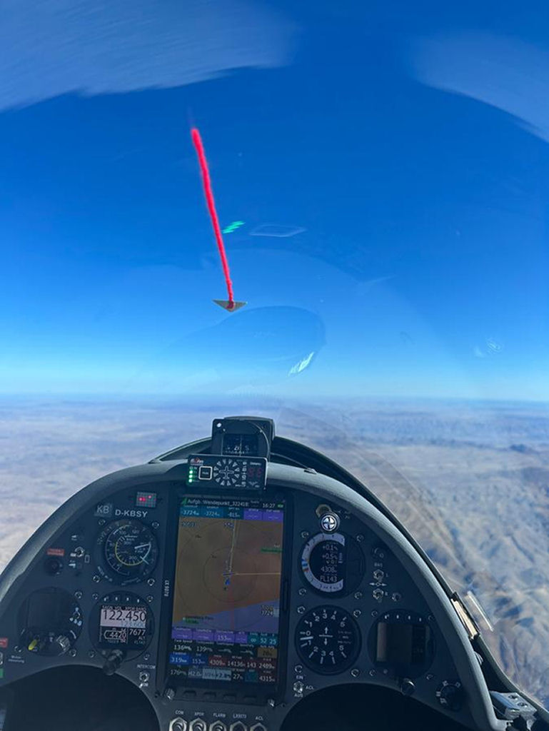 Already at takeoff around 9:20 a.m. (loc), the pilots were greeted by great Cu clouds with a base of nearly 3000 meters. An absolutely amazing day! According to reports, takeoff would have been possible as early as 9 a.m. in terms of weather conditions. This is truly an exception in Namibia. In just under 10 hours of flight time, they flew the triangle at an average speed of 130 kilometers per hour. The last 350 kilometers had to be covered in blue sky.