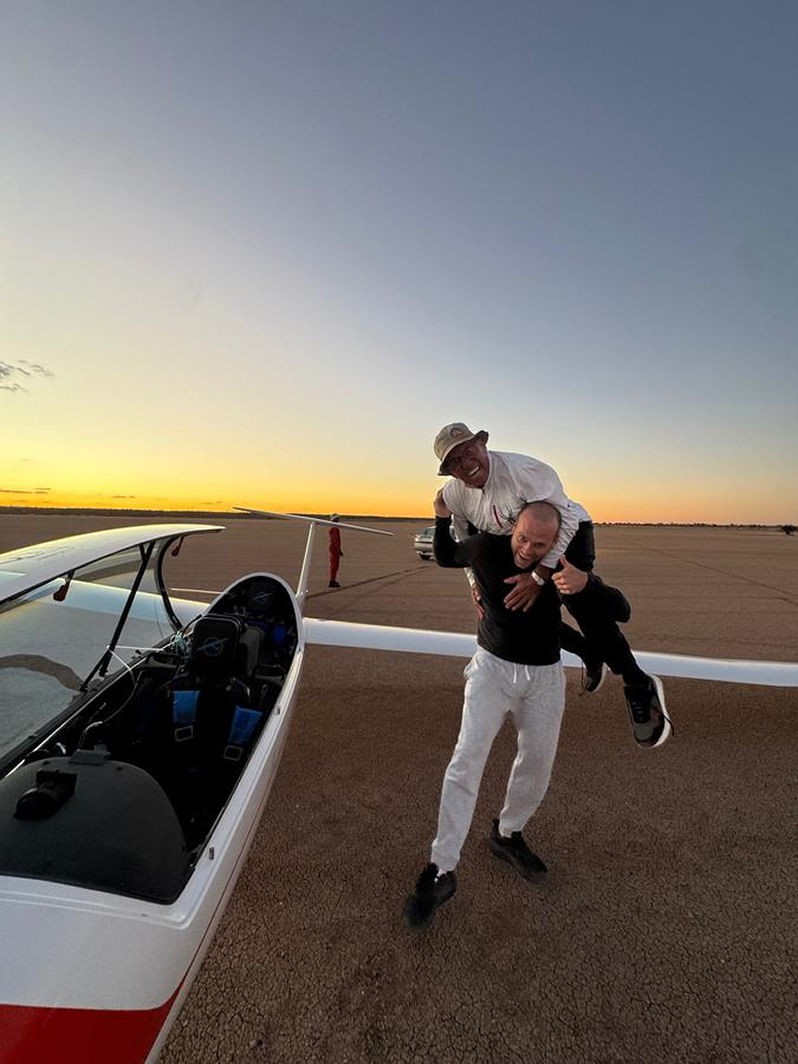 Both had achieved something very special in fantastic weather. They flew a declared triangle of 1250 km on an Arcus M. This flight marks the first 1250 km FAI triangle flight from Bitterwasser. As a special icing on the cake, they flew the beautiful triangle around the Windhoek airspace. This is considered particularly challenging due to the airspace situation.