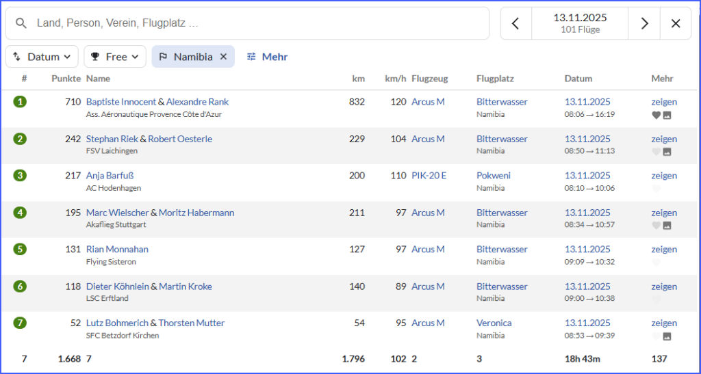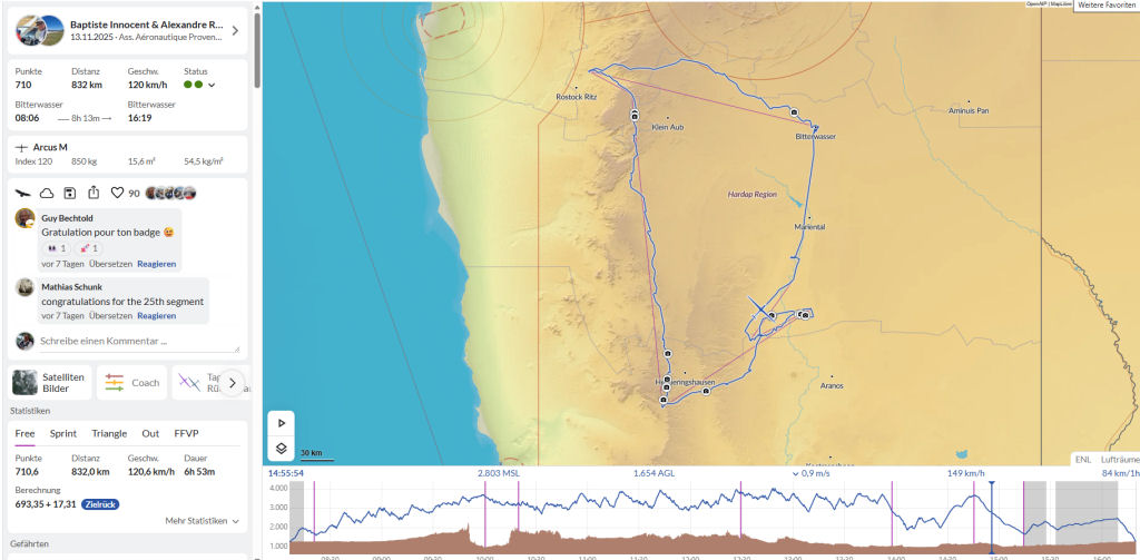 An impressive flight, especially considering that on that day in Namibia, only local flights of up to 300 kilometers were carried out.