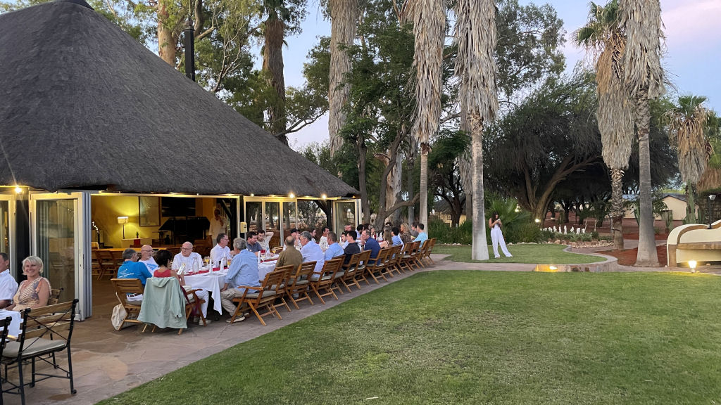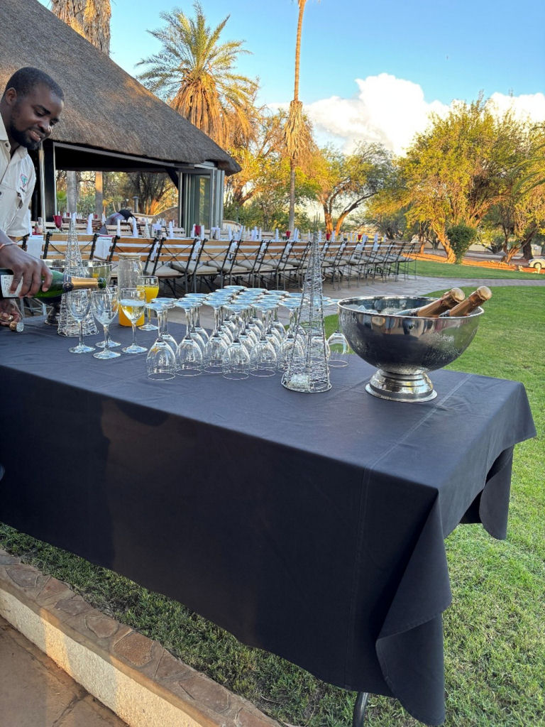 The main course consisted of turkey and mini beef fillet, as well as the long-awaited springbok. The wonderful meal was rounded off with various desserts, including macarons, crème brûlée, and a light chocolate mousse.